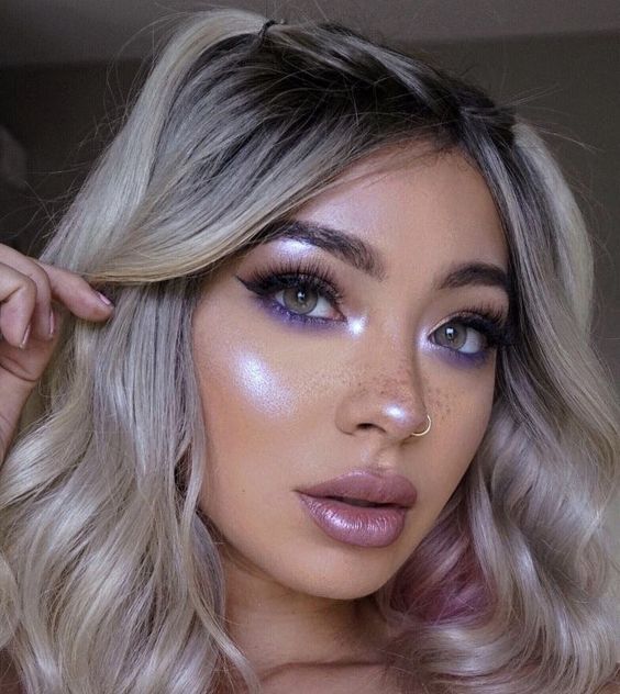 - Увлажненная, сияющая кожа. Со временем кожа становится более тусклой: внутриклеточные процессы замедляются, и ей не хватает «сил» удерживать влагу и вырабатывать необходимые вещества. Поэтому очень важно увлажнять кожу перед макияжем, а также использовать косметику с эффектом легкого сияния. Но будьте осторожнее с сухими шиммерами и глиттерами.