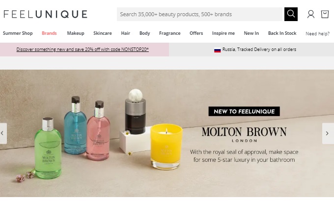 Feelunique востребован среди российских женщин. Тут можно купить люксовую косметику, но цена на нее весьма демократично. Есть определенные минимальные лимиты на заказ, чтобы посылка была доставлена бесплатно. Также действуют скидочные купоны, по некоторым предложениям цена может упасть даже до 50 процентов. Нисколько недаром, feelunique.com занимает первое место по продажам в Сети.