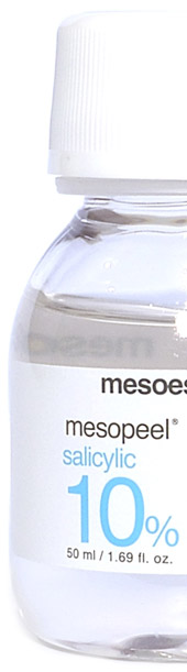 В зависимости от концентрации и глубины проникновения различают два вида салицилового пилинга. Поверхностная эксфолиация проводится слабоконцентрированным раствором, например, Salicylic peel 10%. Препарат щадящего действия от Mesoestetic рекомендован при комедонах, угрях, застойных пятнах, жирном блеске. С рубцами и пигментацией лучше справляется поверхностно-срединный пилинг, в ходе которого используют составы с 30% салициловой кислотой.