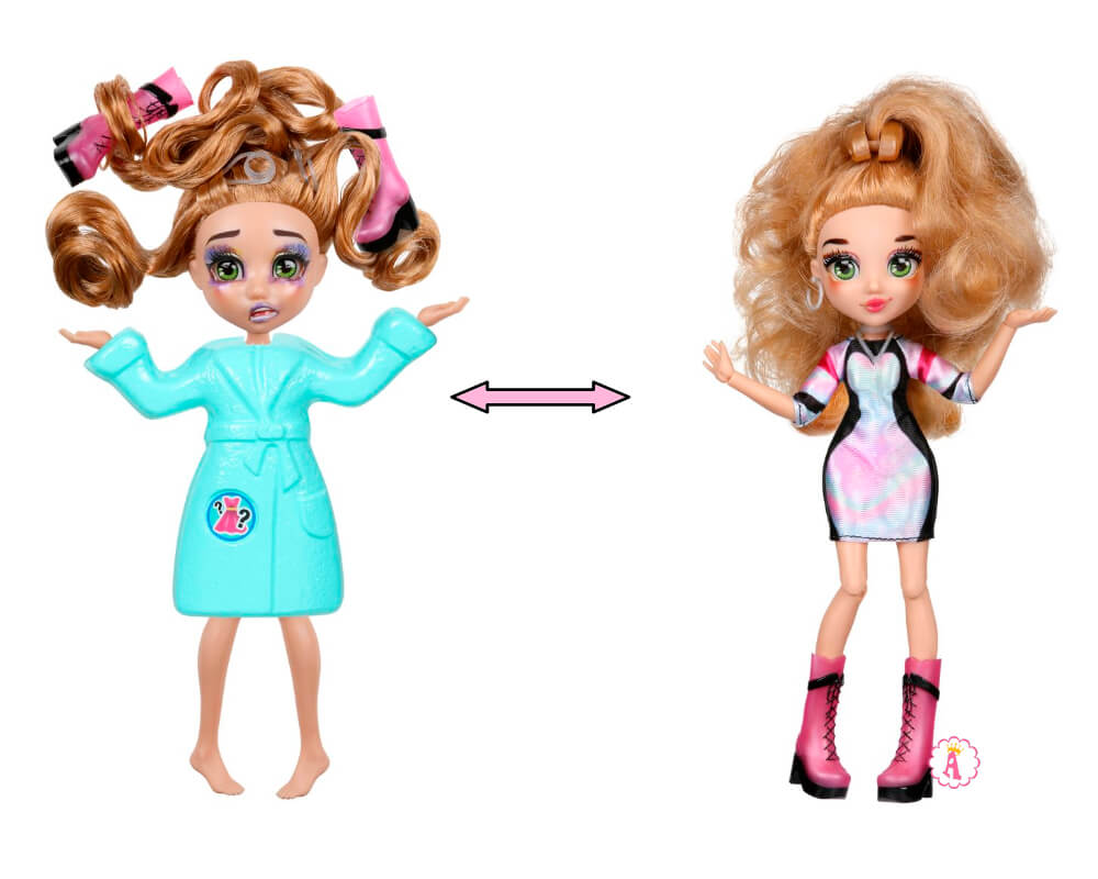Изначально на кукле Fail Fix надет банный халат. Но судя по промо фото, он не из ткани. А вот тканевый аутфит в коробке упакован как сюрприз. В компании Moose Toys уверяют, что при распаковке может попасться платье из редкой или даже очень редкой ткани.