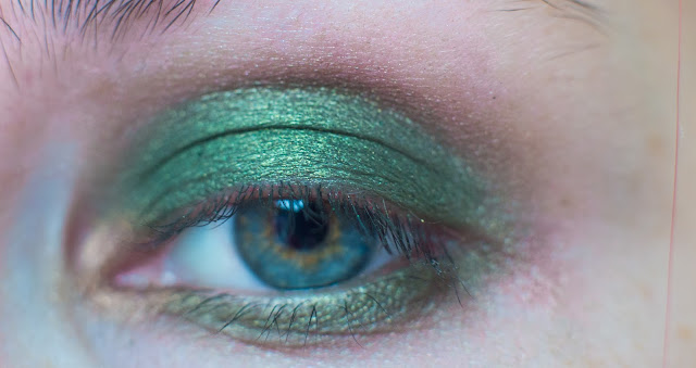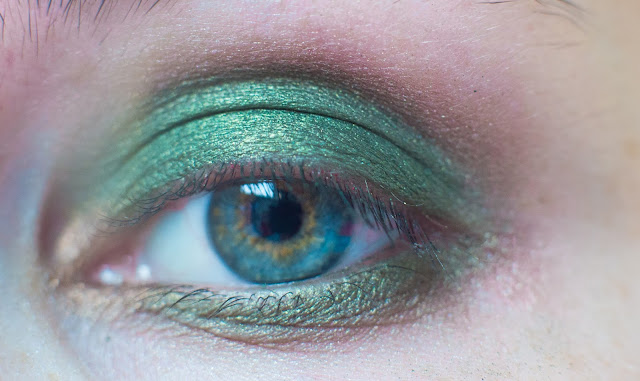 При моем выраженно нависшем веке макияжи со сложными цветосочетаниями теней делать проблематично еще и потому, что кожа склонна к жирности: даже один слой пигмента может скататься в самый неожиданный момент. NYX Cosmic Metals удивила в этом плане самым приятным образом! На базе держится великолепно весь день, 8+ часов точно.